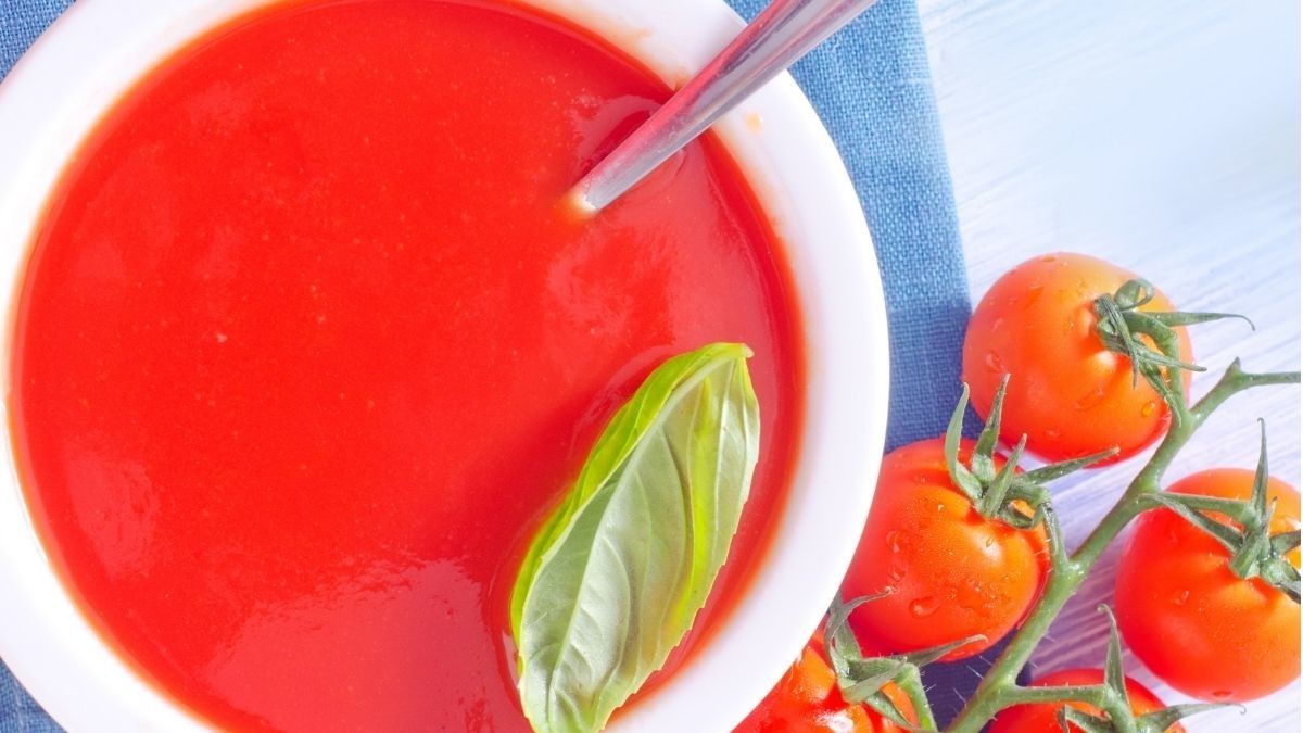 Sup tomat yang ditambahkan dengan berbagai bumbu akan terasa lezat dan menyegarkan.