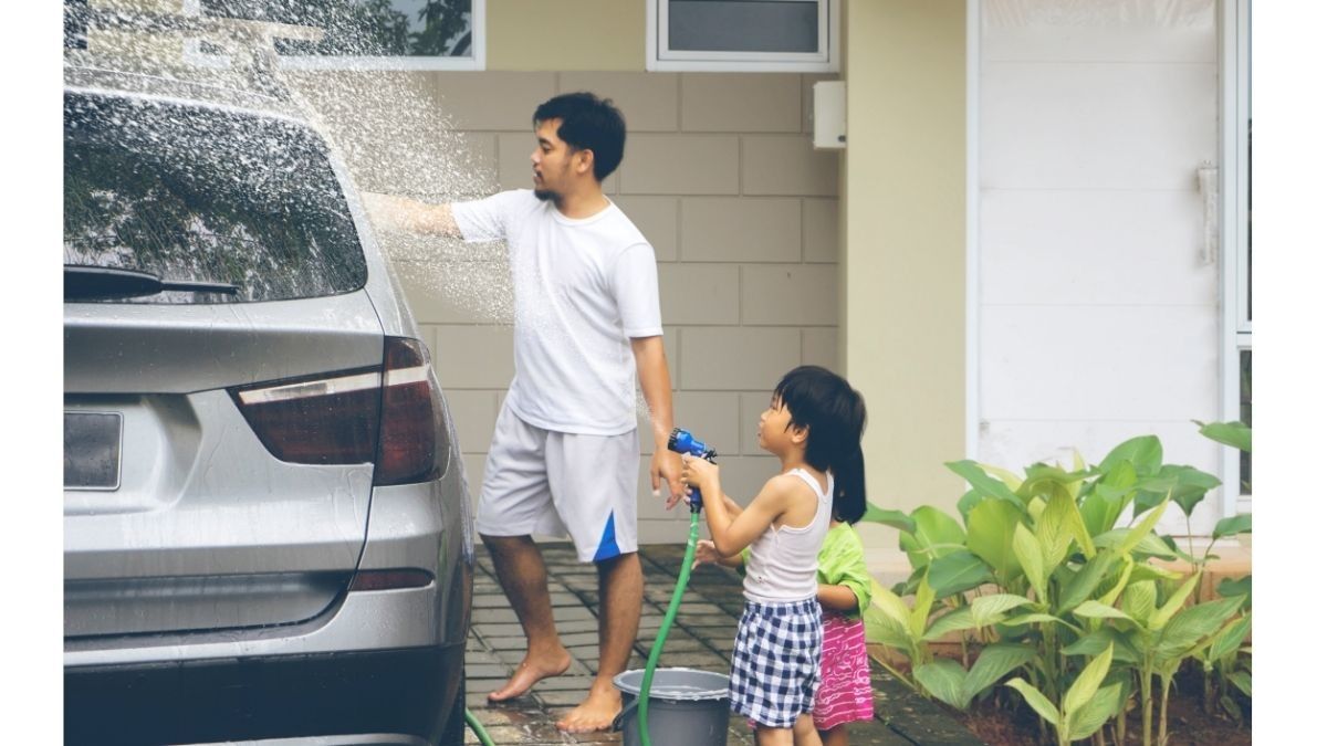 Ketimbang pergi ke tempat cuci mobil otomatis, ciptakan waktu berkualitas bersama anak dengan mencuci mobil bersama.