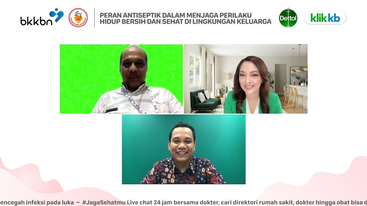 Hadir dalam webinar tersebut, Martin Suanta, SE, M.Si (Direktur Bina Kualitas Pelayanan KB BKKBN RI), Reisa Broto Asmoro (Dettol Brand Ambassador), dan Arlies M. Nugraha mewakili KlikDokter.