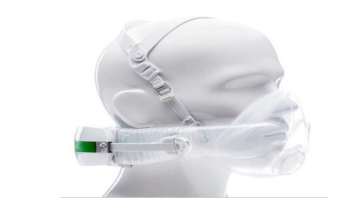 Masker respirator itu menarik perhatian karena bentuknya yang besar dan terlihat agak sesak.