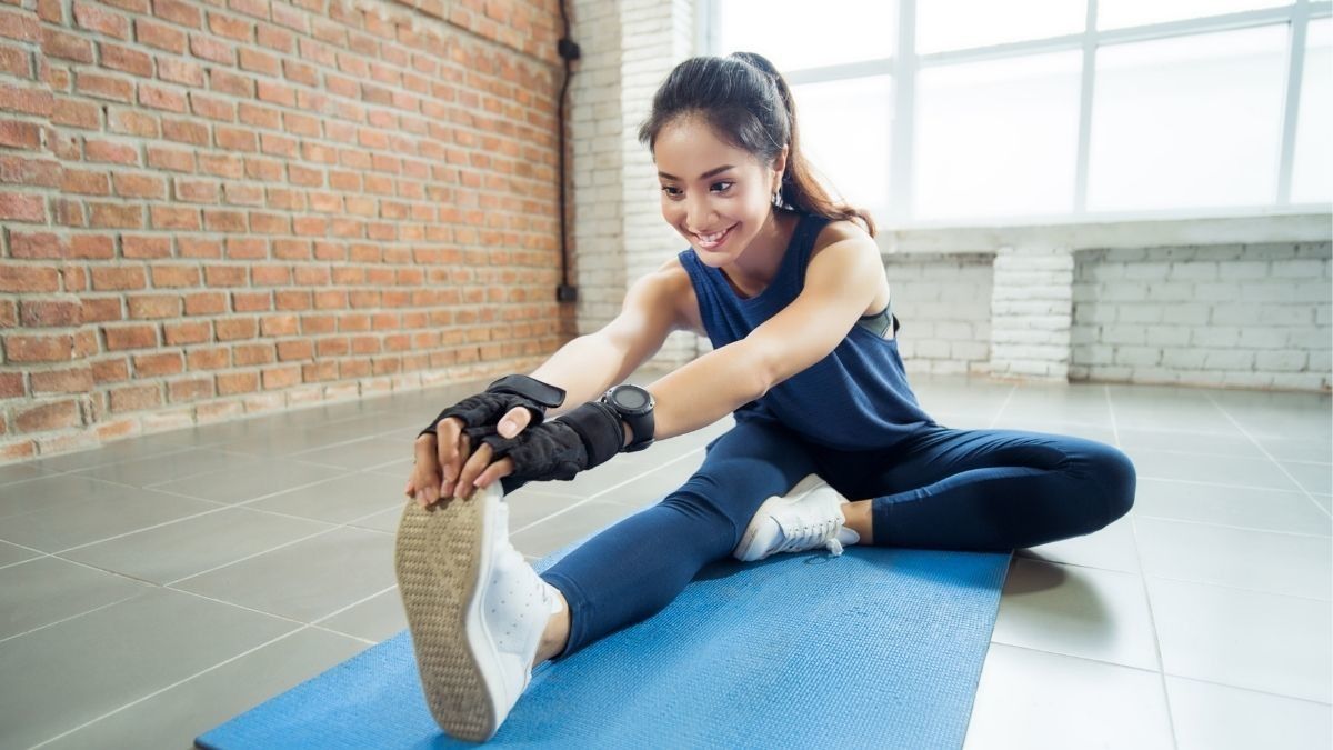 - Tekuk satu lutut Anda, kemudian angkat tumit menuju ke arah bokong.