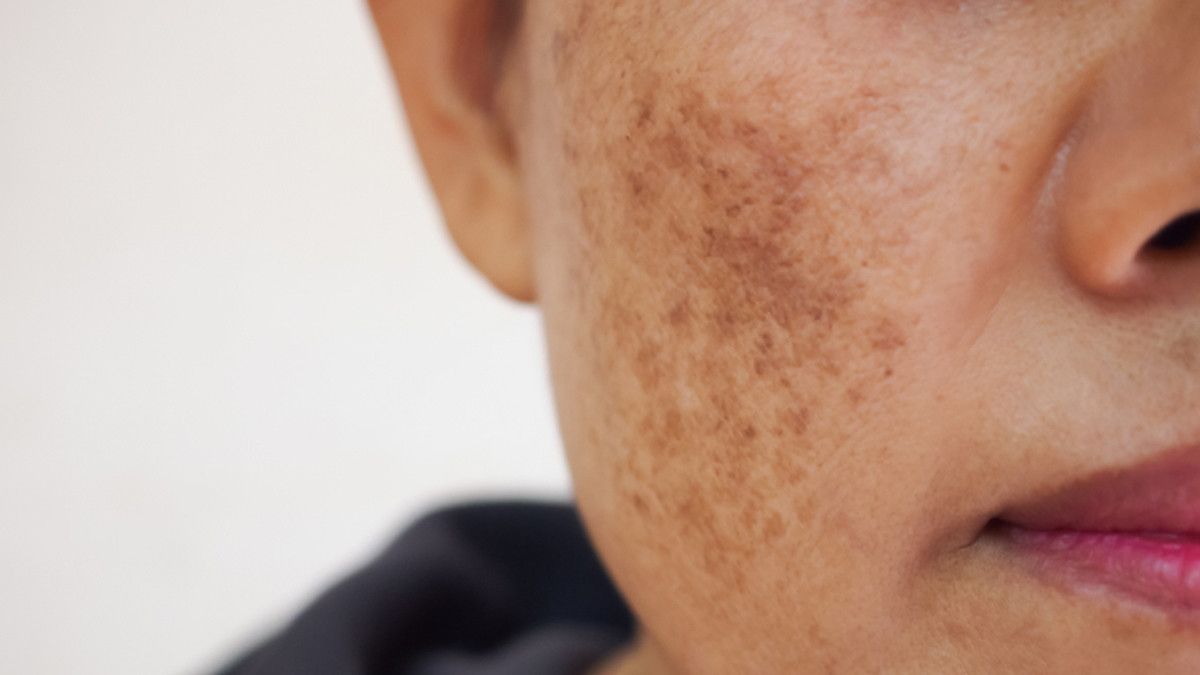 Melasma adalah bercak cokelat yang cukup luas, dan umumnya mengenai kedua sisi wajah secara simetris (kanan dan kiri). Ini biasanya ditemukan di dahi, pipi, batang hidung, dan dagu.